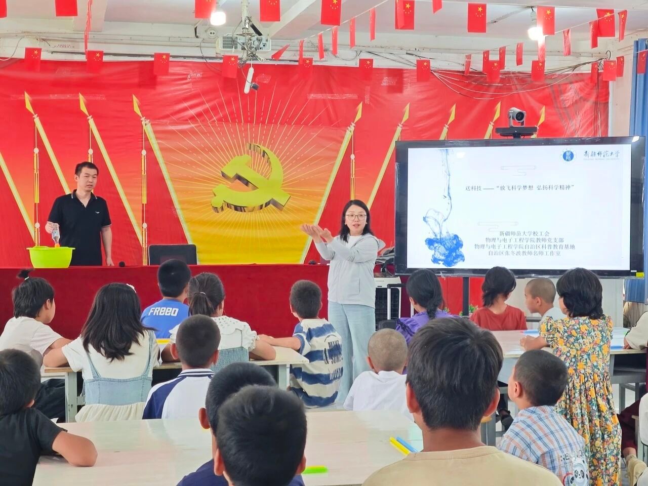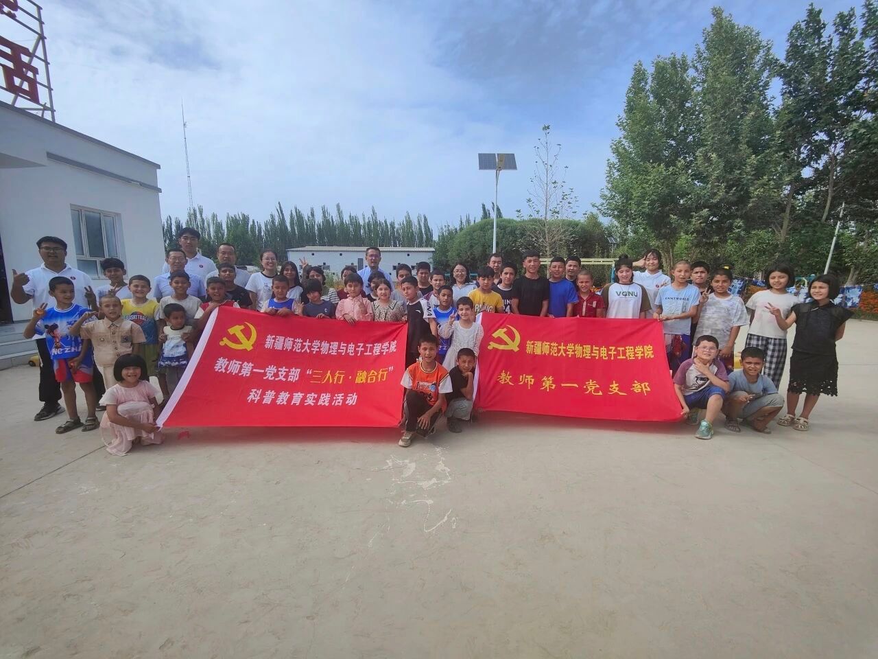 为贯彻落实学校党委关于文化润疆工作的部署安排,积极探索南疆基础教育帮扶新模式,助力乡村振兴和民族团结进步事业,7月14-15日,物理与电子工程学院教师第一党支部党员老师赴莎车县孜热甫夏提塔吉克民族乡开展了“三人行 · 融合行”科普教育实践活动。此次活动得到学校工会、驻莎车县前方党工委、驻村工作队和校团委的大力支持,全乡150余名中小学生参加活动。