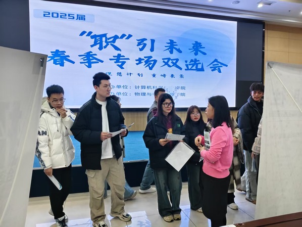 为深入贯彻国家关于促进高校毕业生就业的方针政策,落实学校就业创业工作推进会议精神,加强学院访企拓岗力度,助力毕业生高质量就业,3月13日,物理与电子工程学院联合计算机科学技术学院邀请新疆源联互创通信技术有限公司等11家用人单位举行了专场招聘会。此次招聘会共提供岗位200余个。物理与电子工程学院党委书记李莉、党委副书记、纪委书记买星、学院就业专干苑运强和年级辅导员周丽茹参加招聘会。